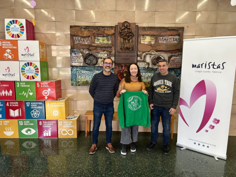 O projeto vencedor é da Ana Tablado Maestro, do Colegio Marista Castilla, em Palência. A Ana recebeu o prémio (uma sweatshirt com o desenho vencedor e um cabaz de produtos do comércio justo) das mãos do coordenador da equipa provincial de solidariedade, Javier Arroyo, juntamente com o diretor da escola, Javier Pozo.